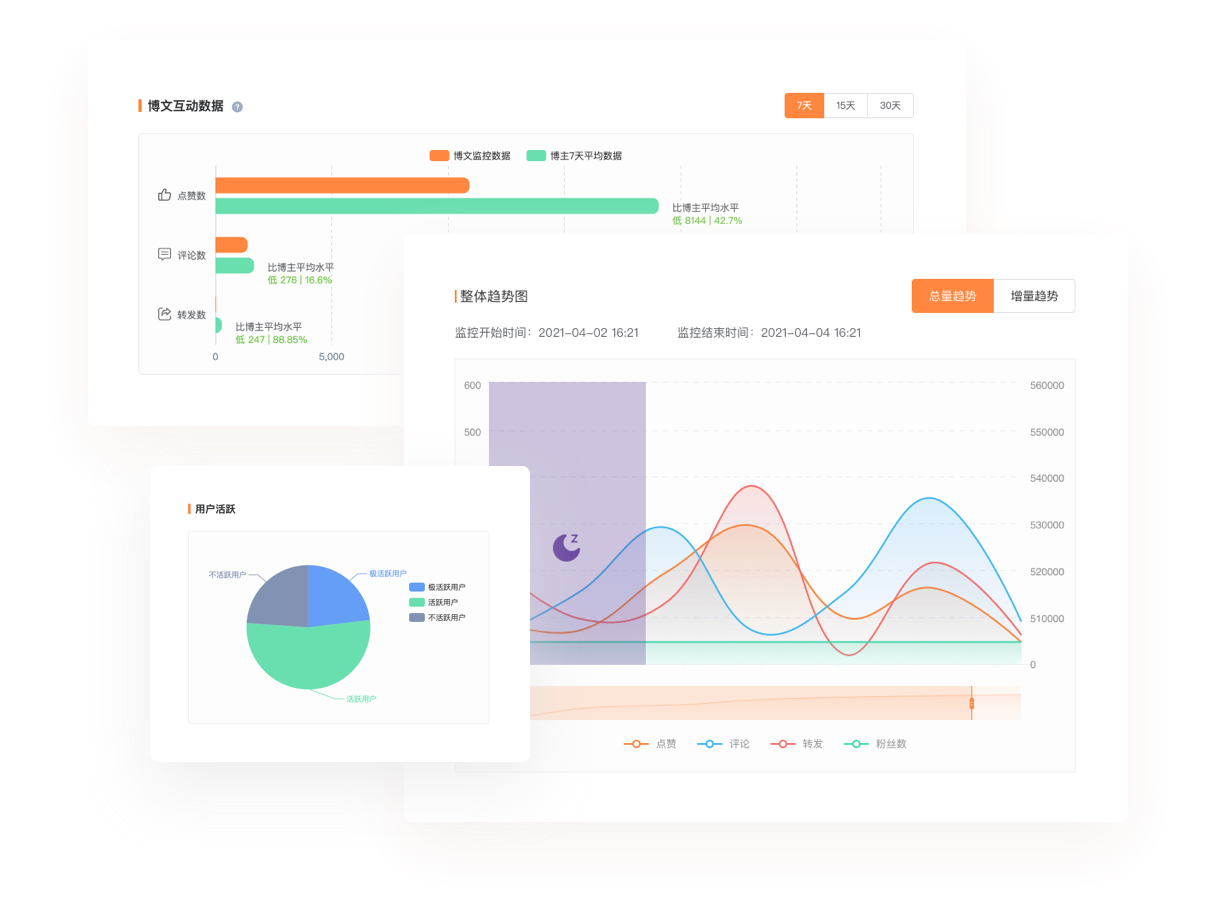 實(shí)時(shí)追蹤傳播動(dòng)態(tài),掌握互動(dòng)變化趨勢(shì),有效判斷數(shù)據(jù)真?zhèn)巍⒎治鍪鼙姰?huà)像